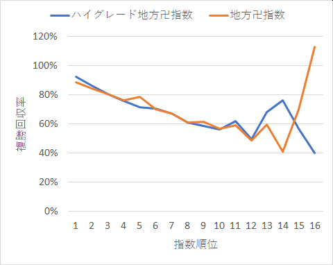 当初、この指数を公開する予定はありませんでしたが、「重賞予想」の利用者の増加によるオッズ下落が見られるようになり、買い目自体を提供するよりも指数を提供した方が、将来的には私にとっても利用者にとっても好ましいと考えました。また、賭金の大きな利用者が「地方卍指数」から「ハイグレード地方卍指数」に切り替えることで、「地方卍指数」の利用者にとっても指数上位馬のオッズ下落の心配が減るメリットが期待できます。